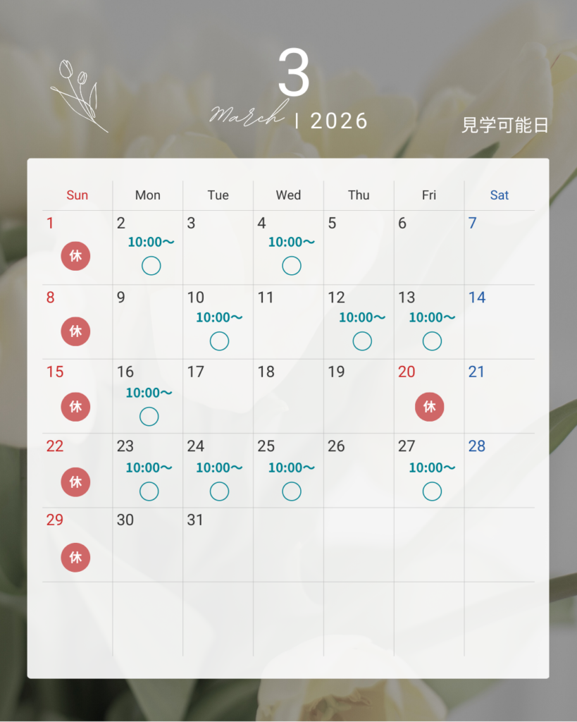 見学をご希望の方は、日程をご確認いただき、電話にてご予約をお願いします。